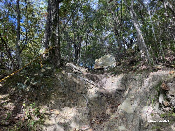 最後の難所?剥き出しの根っこに生命力を感じますね。ここを登り切ると、いよいよ山頂です!!!