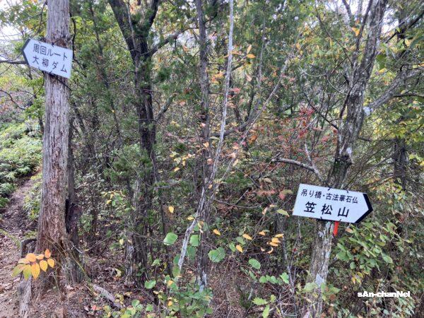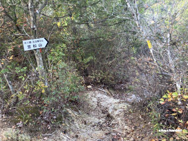 せっかく登ってきたけど、一旦降りていきます。笠松山への道標もしっかりあります。岩登りやロープ場はあるものの、全体的にとても整備が行き届いている印象。