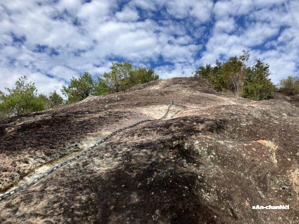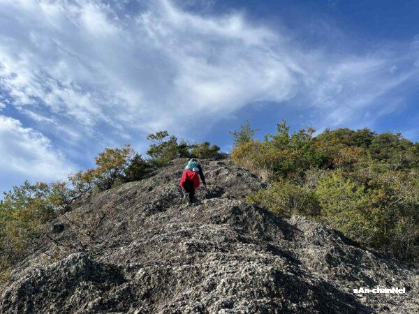 剥き出しの岩肌。岩をよじ登るのってとっても好きなので、こういうご当地アルプスは大好物です( ´∀`)