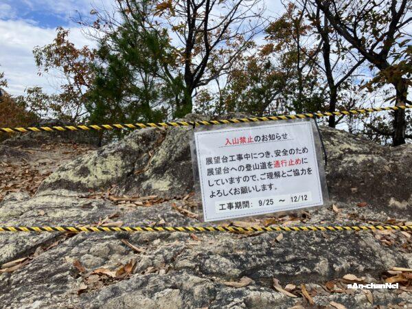 展望台工事中につき12月12日までは通行止めになっています。この看板を他でも見かけたのですが展望台🟰笠松山だと思わなくて、他の場所なんだろうと思っていたのですが・・まさか山頂に行けないとは・・!仕方ないのでルート変更。
