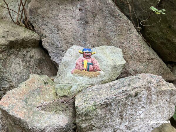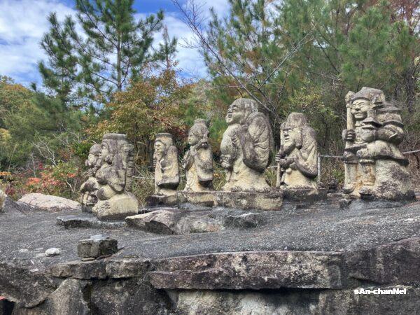 降りてくると、七福神様がお迎えしてくれました!石でできた立派な神々!