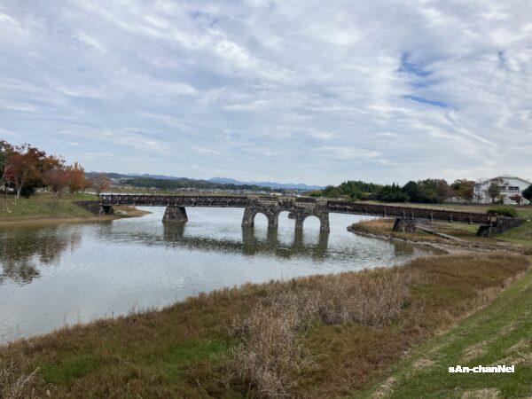 帰り道も、皿池にかかる橋が見えてとっても風情があります。自然が豊かでとても素敵な場所ですね!