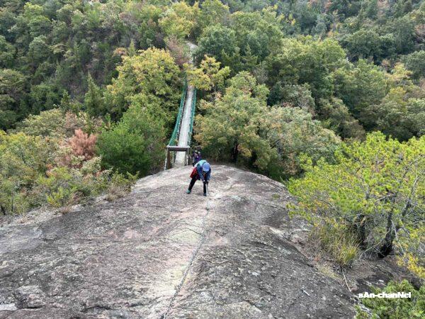 橋を渡った先にも巨大な岩場があって、鎖がぶら下がっています。鎖をよじ登ってその先へ!とっても楽しい!